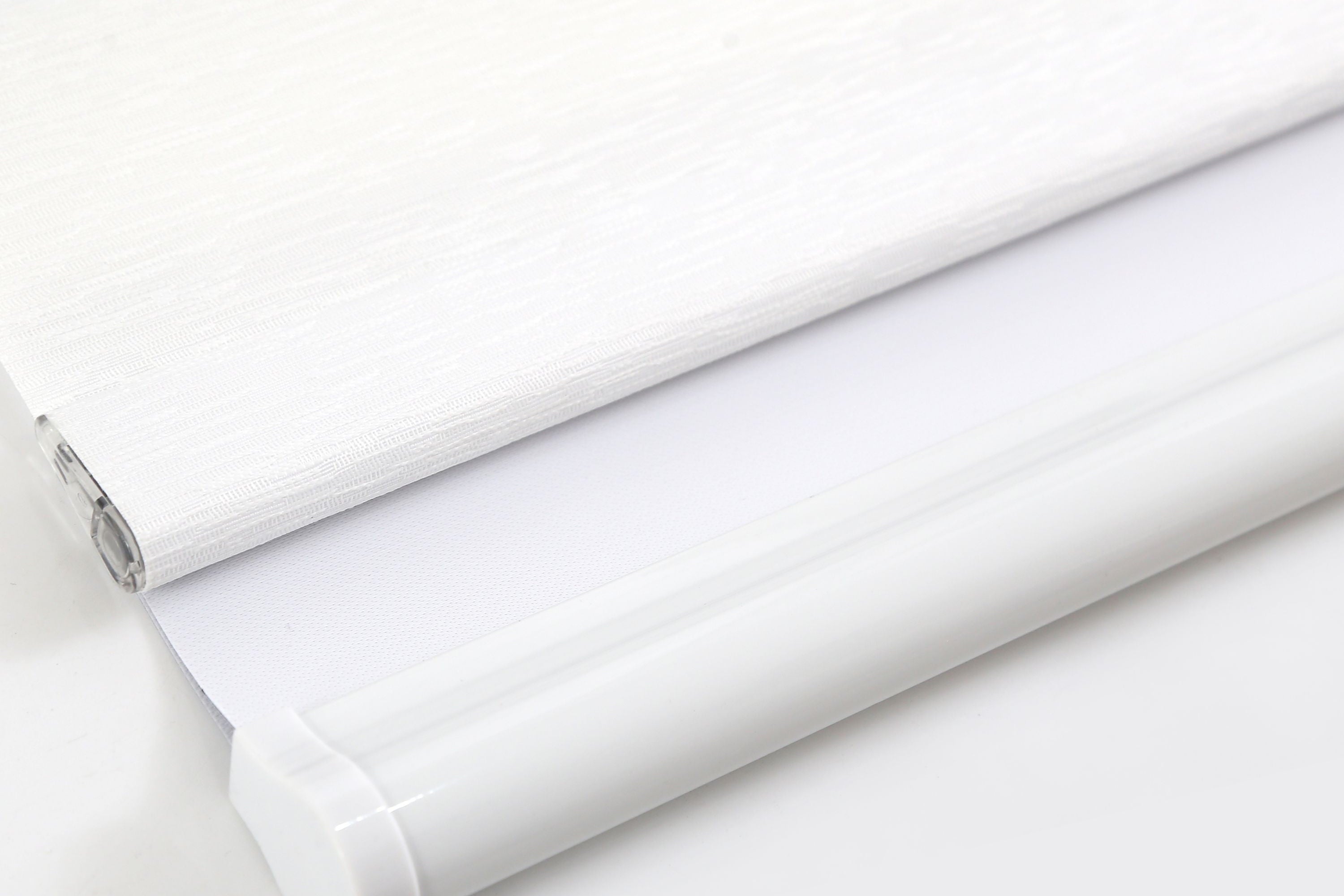 For a polished finish, you can customize the roll style with a matching cassette headrail, fabric insert, and a white bottom rail to completely conceal the roller. You can also choose an aluminum valance, available in 5 colors with a matching color bottom rail.